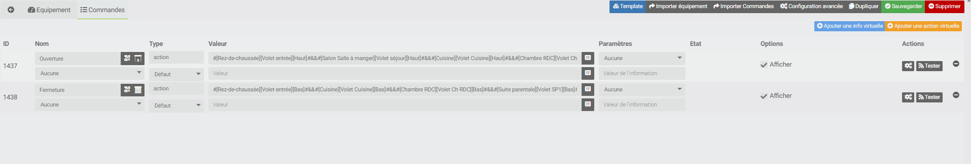 J’ai revu les commandes de mon virtuel et c’est ok, je précise j’arrive bien à commander individuellement mes deux volets avec les commandes du modules qubino.