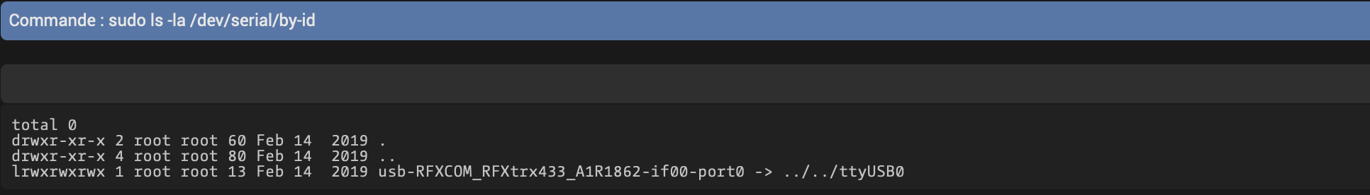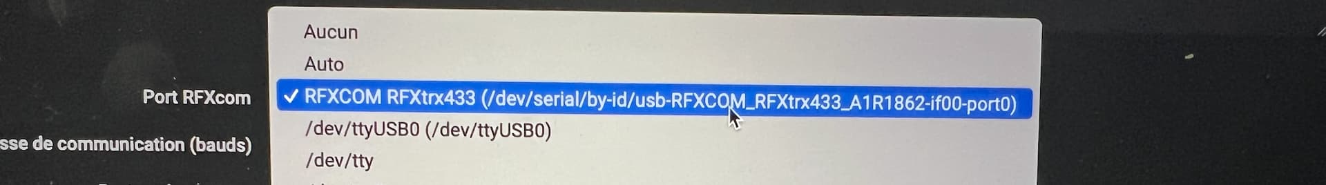 J’ai migré ma Smart de la maison en Debian 11. L’eMMC a été programmée grâce à la nouvelle image fournie en test par @Aurelien qui fonctionne parfaitement sur les autres Smart où je l’ai utilisée. Après restauration de la sauvegarde faite sous Debian 10, tout fonctionne parfaitement à l’exception du plugin RFXcom. En Debian 10, il y avait ceci comme port :
