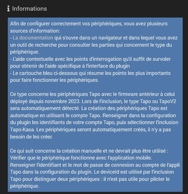 Problème de compatibilité: Il est possible qu’une récente mise à jour de Jeedom ou du plugin ait introduit un bug qui affecte la compatibilité avec vos prises Tapo.