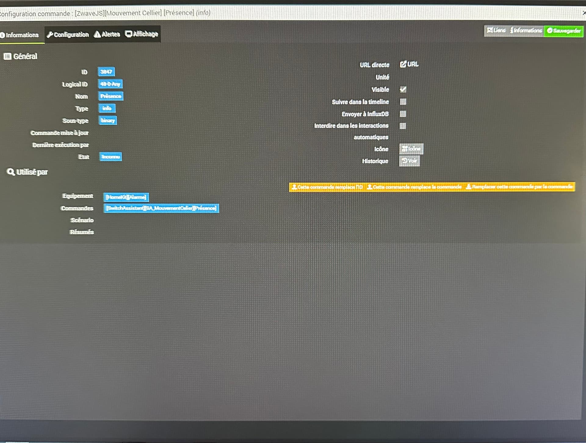 0384|[2023-03-15 17:53:23]DEBUG : [createEqLogic] Création d\'un équipement {"id":56,"inited":false,"status":2,"isControllerNode":false,"interviewStage":2,"deviceClass":{"basic":"Routing Slave","generic":"Notification Sensor","specific":"Notification Sensor","mandatorySupportedCCs":[],"mandatoryControlCCs":[]},"ready":false,"isListening":false,"isFrequentListening":false,"canSleep":true,"isRouting":true,"supportedDataRates":[40000,100000],"maxDataRate":100000,"supportsSecurity":false,"isSecure":false,"supportsBeaming":true,"protocolVersion":3,"manufacturer":"Unknown manufacturer 0xXXXX","productDescription":"0xXXXX","productLabel":"Unknown product 0xXXXX","keepAwake":false}