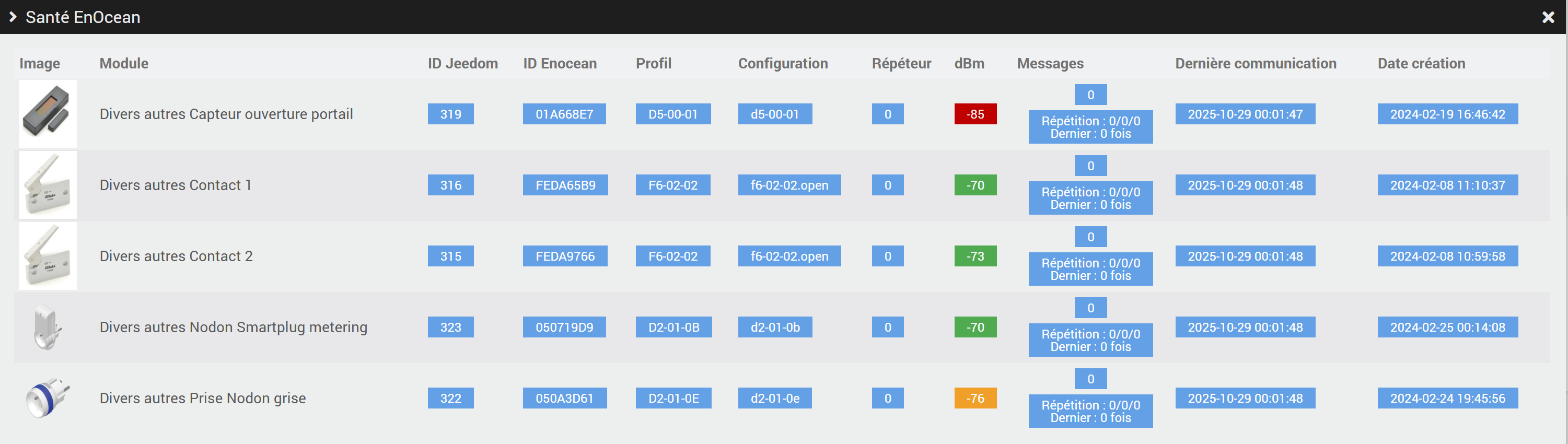 0956|[2025-10-29 18:50:19] DEBUG : Add device : {'id': '01A668E7', 'profils': [{'func': '00', 'type': '01', 'rorg': 'd5', 'ignoreRelease': '', 'allButtons': ''}]}
