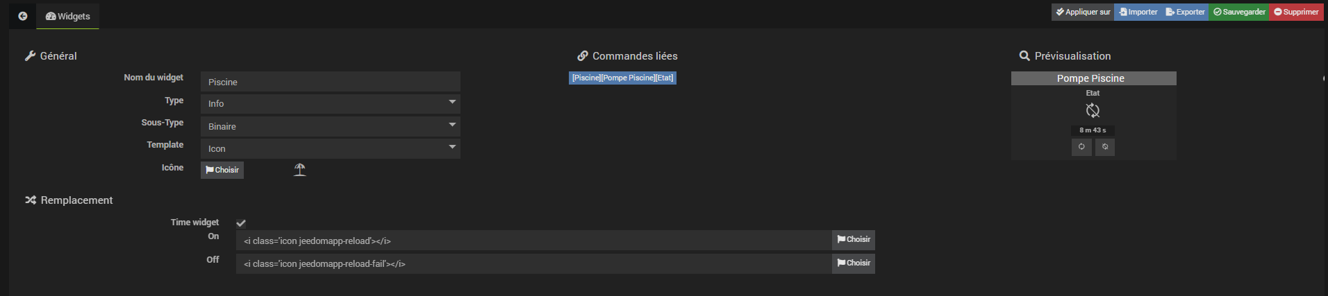 Je souhaite commander une pompe de piscine et voir son état allumé ou éteint, il n’y a pas de retour d’état de la prise mais un bouton on et un bouton off .