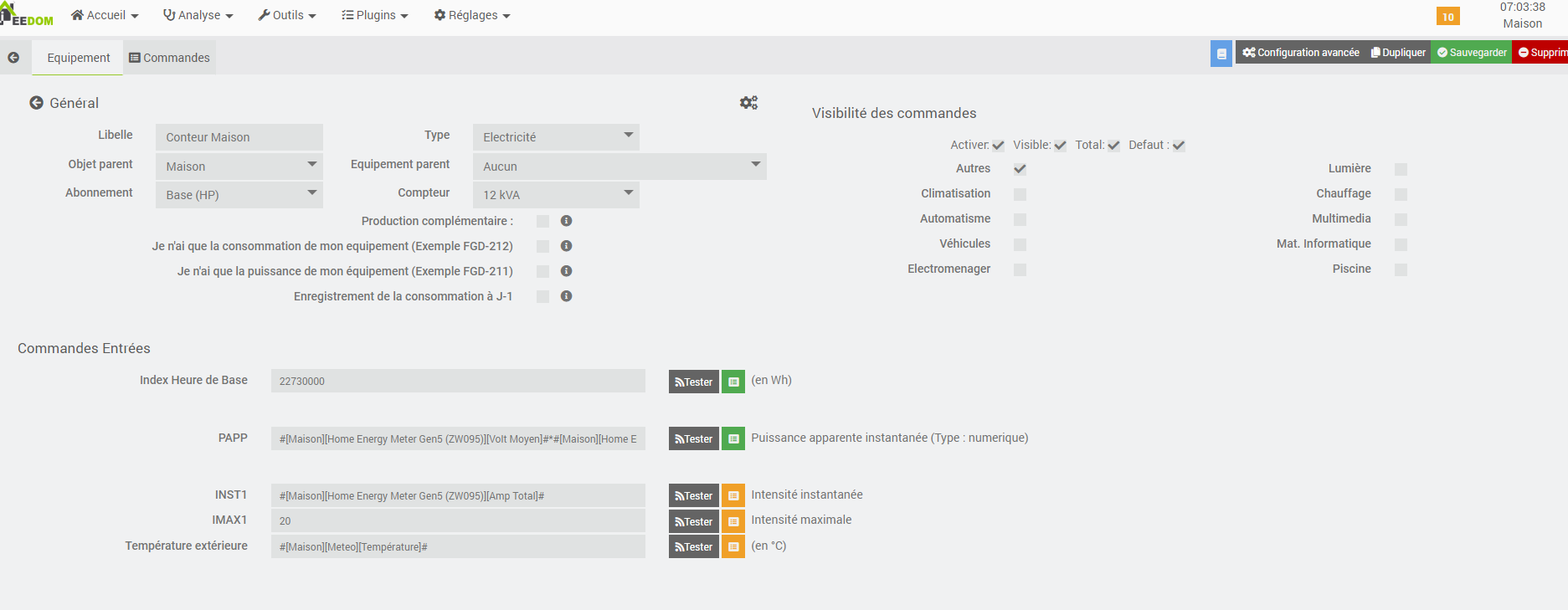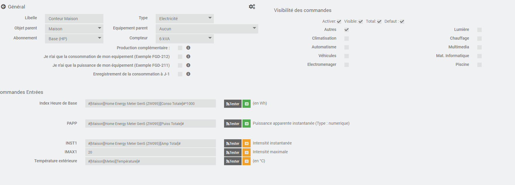 Mon compteur d’electrcité ne renvoie aucune donnée , c’est un compteur ancien .aucun abonement et pas d’heures creuses, heures pleine… Les données sont mesurée par un module Home Energie Meter de Aeotec.