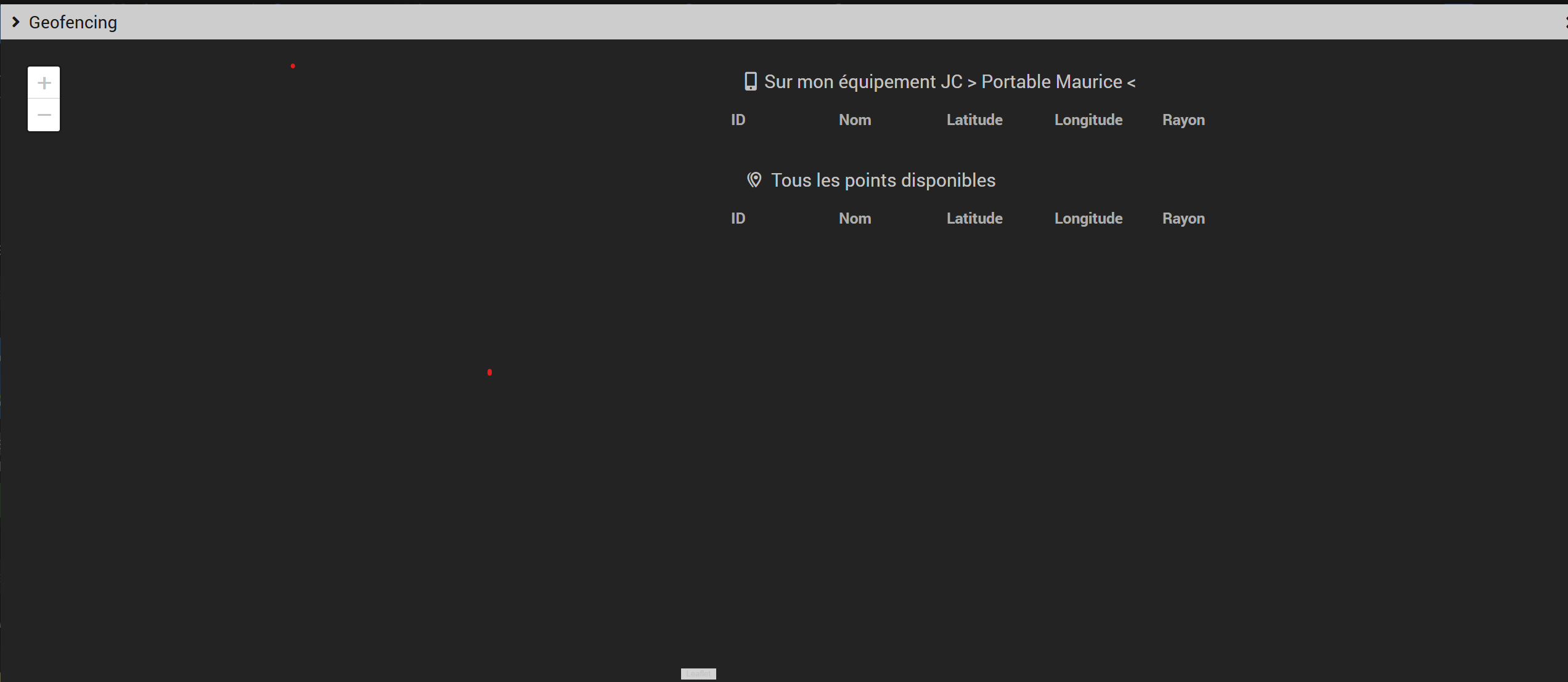 Dans l’application WEB j’ai un problème avec « gérer le geofencing ». La carte ne s’affiche pas et je ne vois pas les zones définies dans l’application sur mon téléphone (ANDROID 16/ OneUI8.0). La carte reste vierge de toute information.
