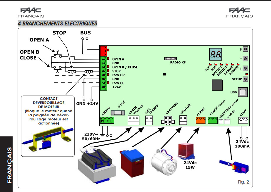 Suite à des travaux, le câble d’alimentation d’une des photocellules (faac E720) de mon portail a été arraché (merci le maçon, il m’a aussi coupé l’alimentation…) . J’ai donc refait le branchement à l’alimentation Bus easy de la carte, jusque là aucun souci. Mon problème est que les 2 câbles au slot 1 (openA) et slot 2 (GND) ( flèches bleues sur la photo) passent dans la même gaine que celle de l’alimentation de la photocellule et je ne sais pas ou les brancher du coup !! J’ai bien le schéma mais c’est incompréhensible pour moi. Si quelqu’un pouvait lever le mystère sur leur branchement!