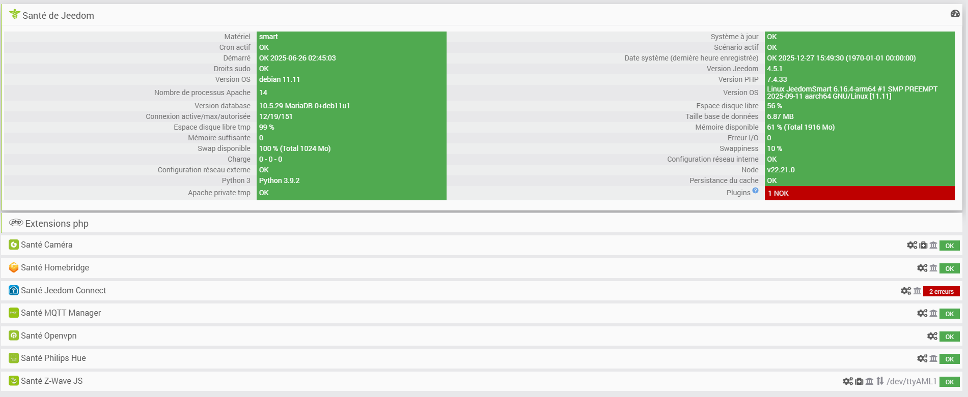 Bonjour, depuis ce matin, impossible de piloter mes appareils zwave. J’utilise ZWAVEJS sur une Jeedom Smart.