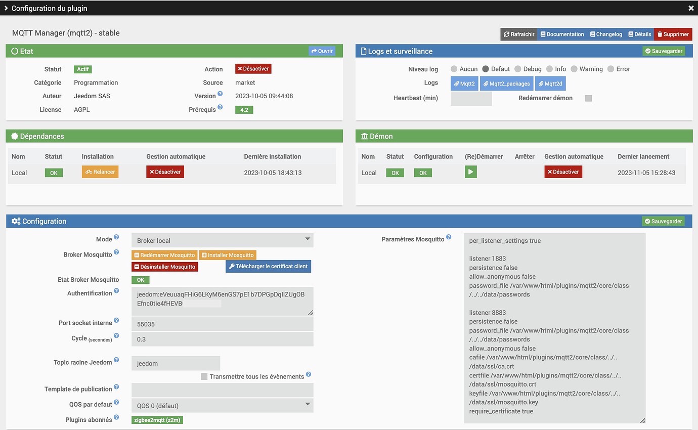 Oui, j’avais bien installé MQTT manager. Demon OK, Dépendances OK, Etat actif. Etat Broker Mosquitto OK ! Par contre fonctionnalités, tout est non. Je vais continuer à lire! et je reviendrai si besoin.