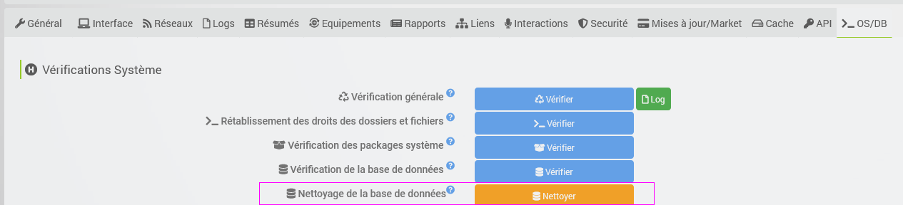 Ca se fait depuis Réglages > Système > Configuration > Onglet OS/DB et tu cliques sur Nettoyage de la base de données