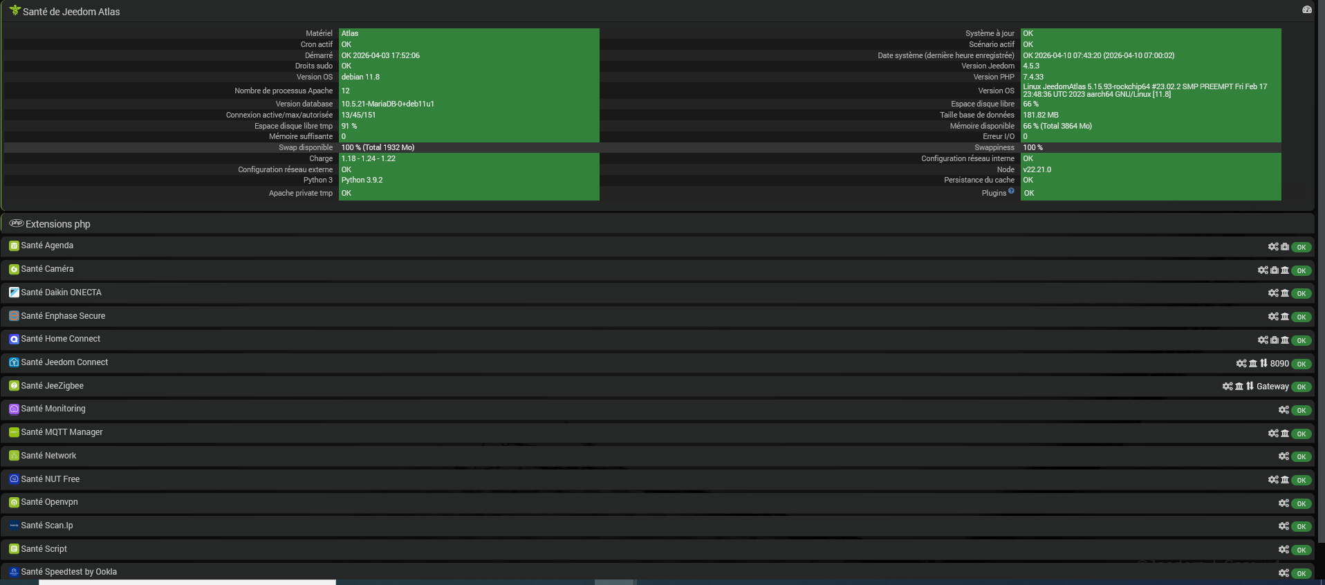 Le mien (6 cœurs), Nombre d’objets : 31, Nombre d’équipements : 346, Nombre de commandes : 4988, Nombre Zigbee : 91, Nombre scénarios : 50, Nombre de demon : 8
