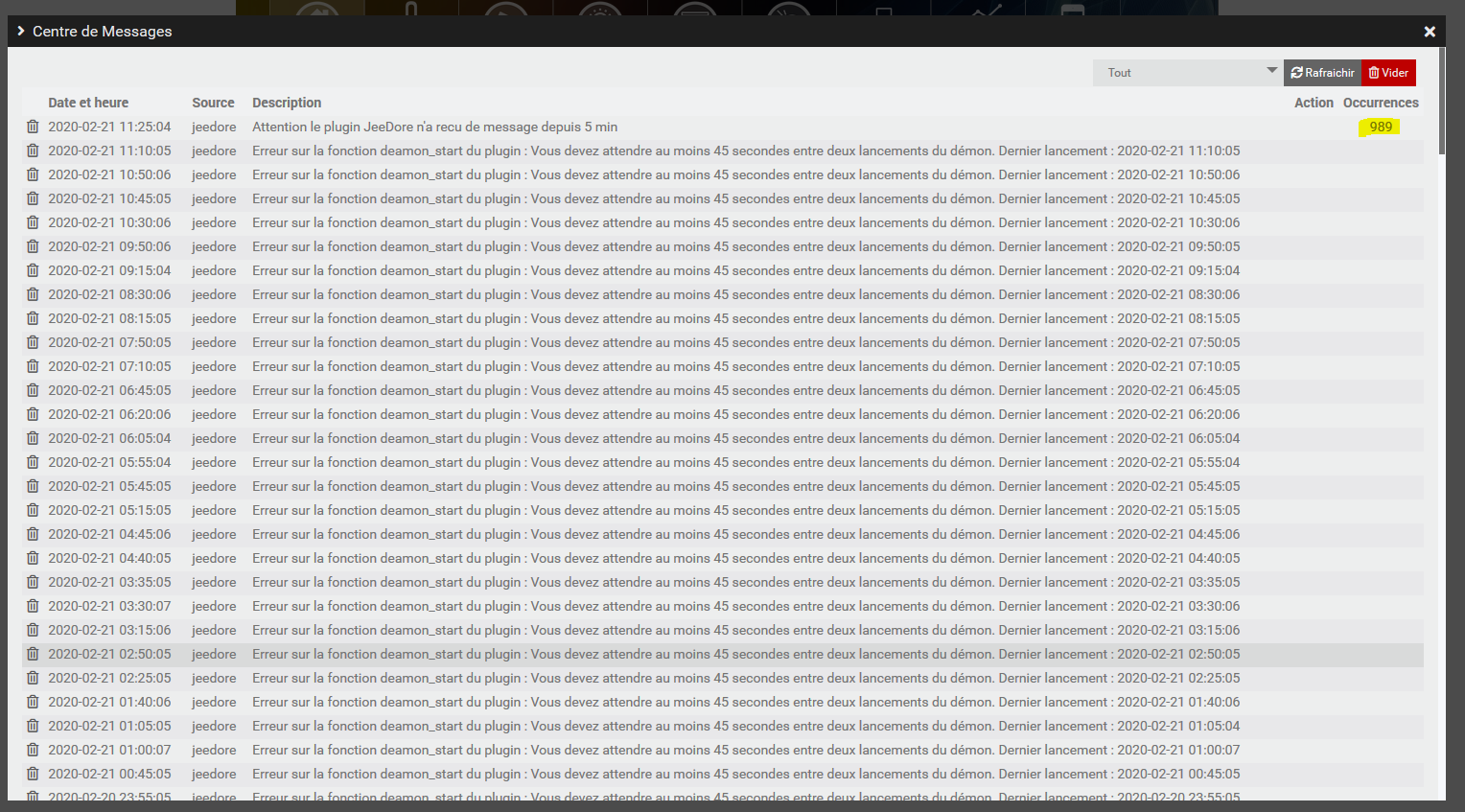 Il m’arrive des centaines de messages dans le centre de notification de Jeedom. Savez-vous quelle peut en est la raison ?
