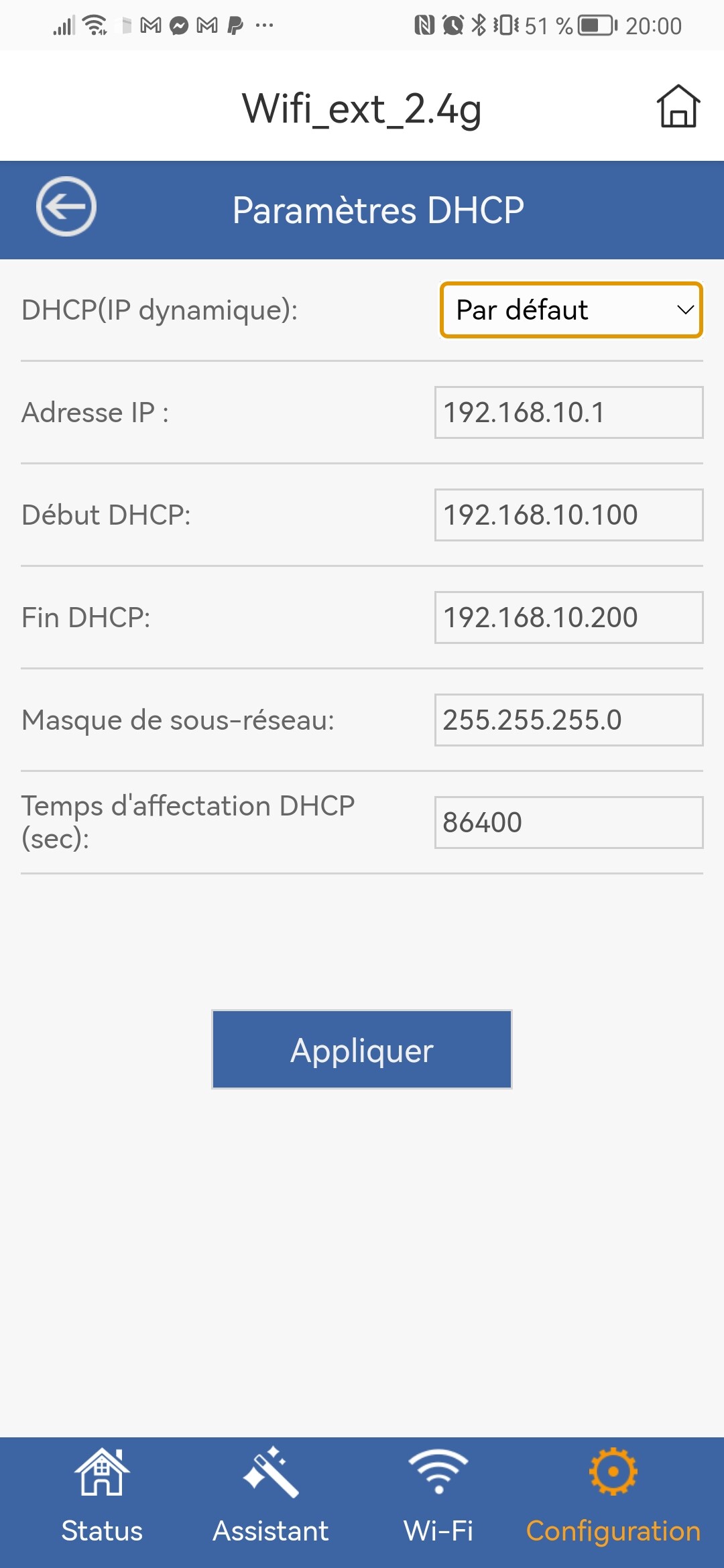 Par contre je n’ai pas réussi à comprendre qui pouvait distribuer cette IP dans le réseau 192.168.10.x