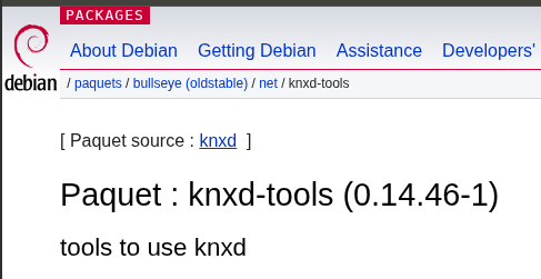 Package système knxd-tools NOK, bouton corriger ne change rien.