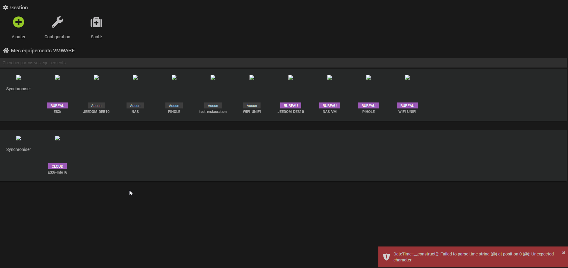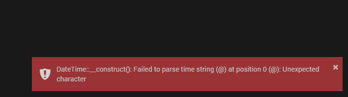 Le message d’erreur DateTime::__construct(): failed to parse time string (@) at position 0 (@): unexpected character ammène au message suivant. Cela semble se produire si le SSH est désactivé sur l’hôte mais le dev semble avoir corrigé pour afficher un message plus explicite dans ce cas. Néanmoins, ca vaut le coup de vérifier que le SSH est bien activé sur ton hôte.