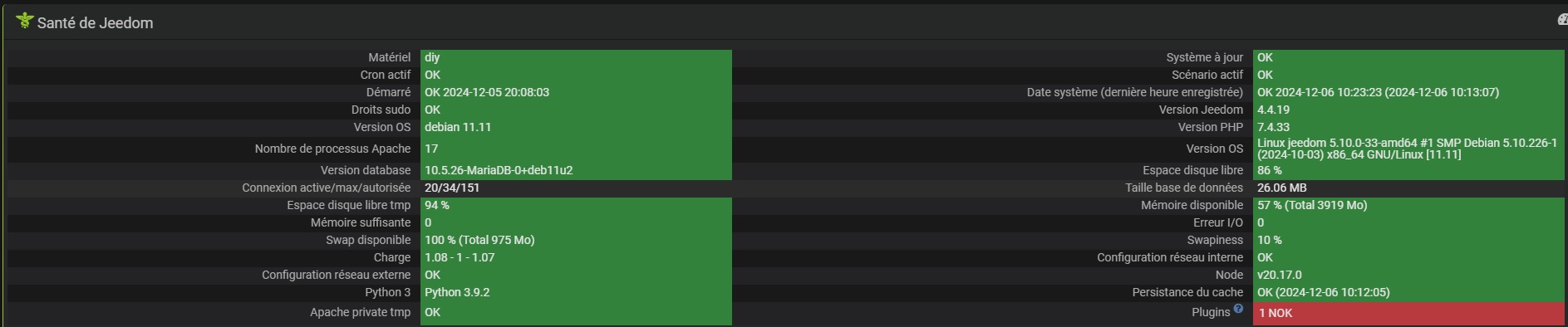J’ai effectivement lu le post et effectué cette procédure et sa ma planté mon jeedom, j’ai eu une page blanche. Par chance j’ai pu réinjecter une sauvegarde antérieure.