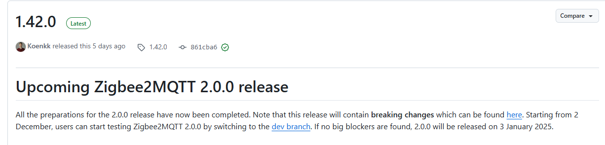 … Avec de nombreux Breaking changes : Zigbee2MQTT 2.0.0 breaking changes · Koenkk/zigbee2mqtt · Discussion #24198 · GitHub