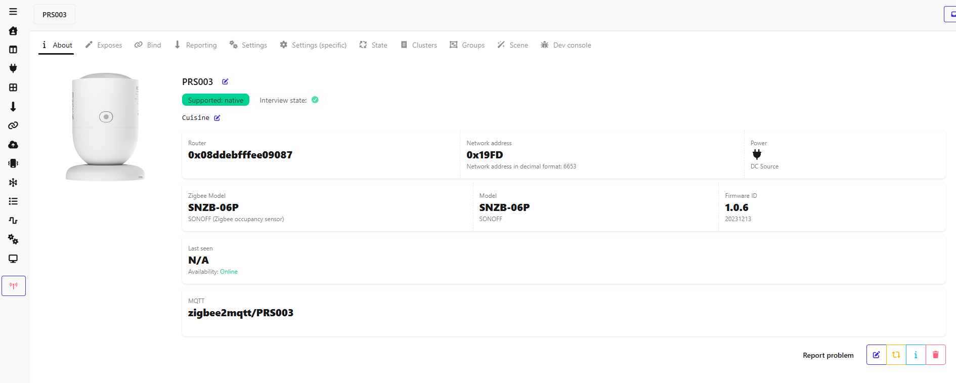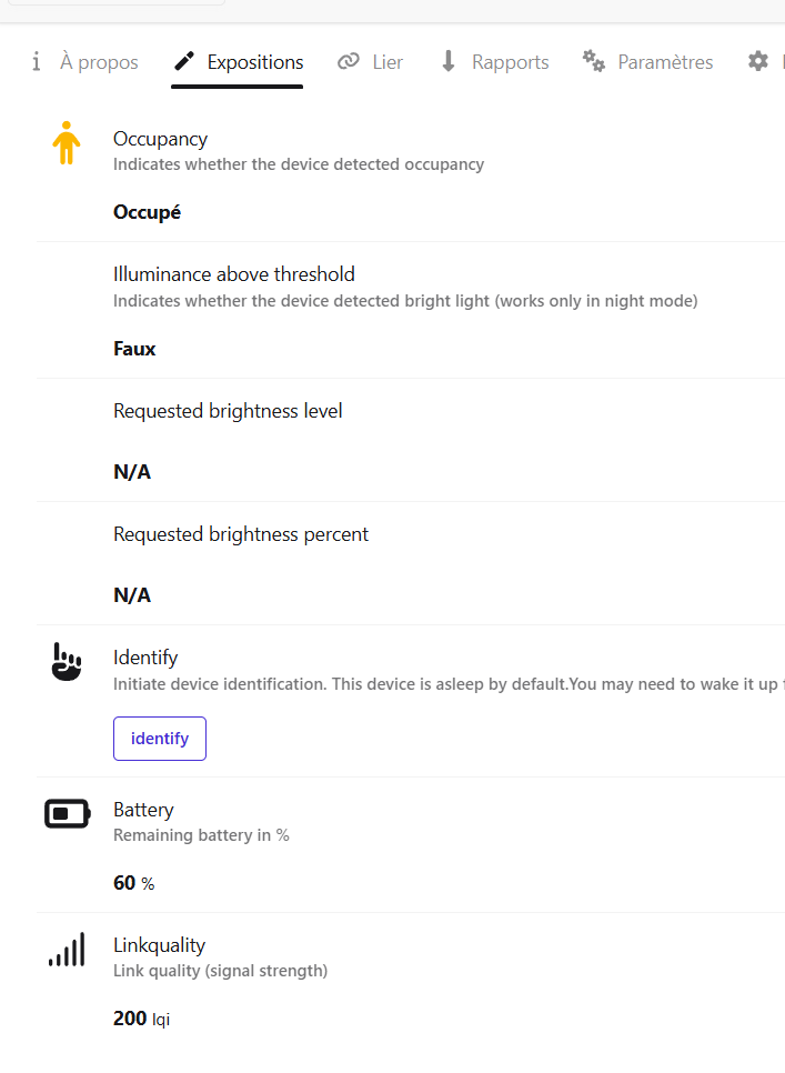 last_seen => « 2026-01-03 22:44:59 » ca correspond plus ou moins au log de Z2M du message qui dit qu’il a détecté une présence: