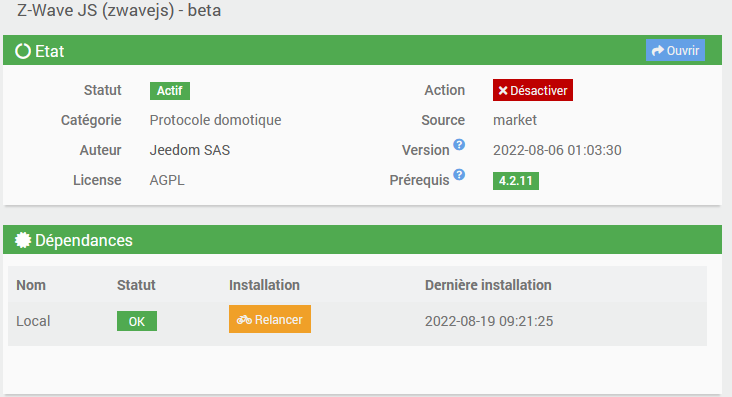 Je viens de faire une installe Jeedom to neuve pour tester Zwave-JS, sur une VM debian 11 (bullseye). Je n’ai dessus, pour le moment, que MQTT manager correctement installé et paramétré.