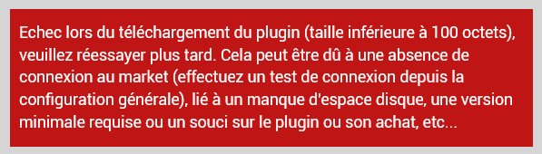 Je suis en core 4.4.19 donc ce n’est à priori pas ça. J’ai essayé d’installer d’autre plugin sans problèmes donc pas de problèmes de connexion.