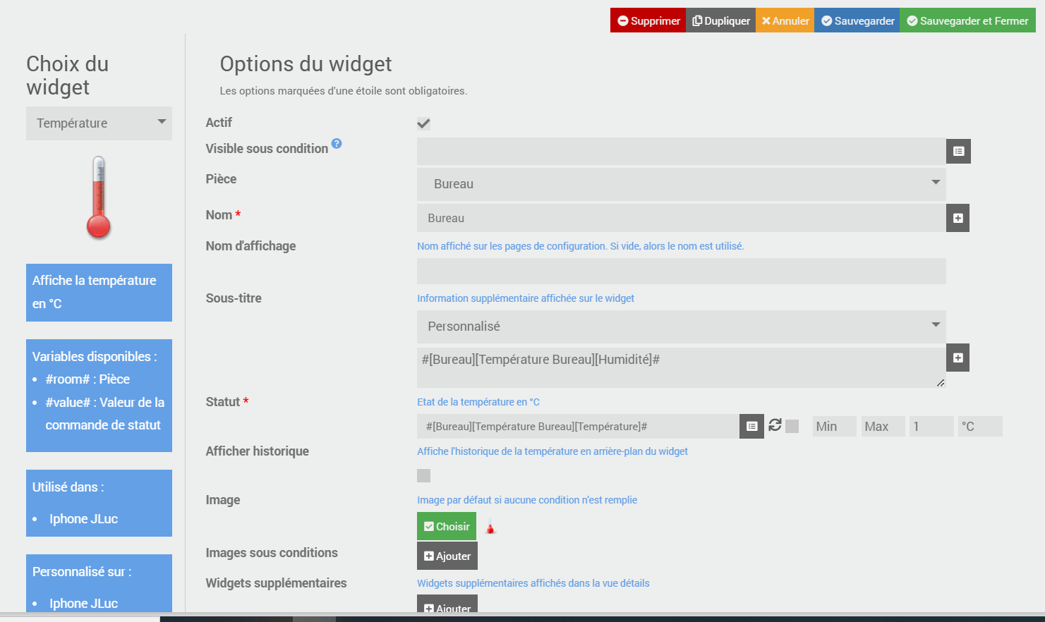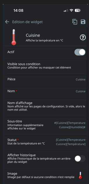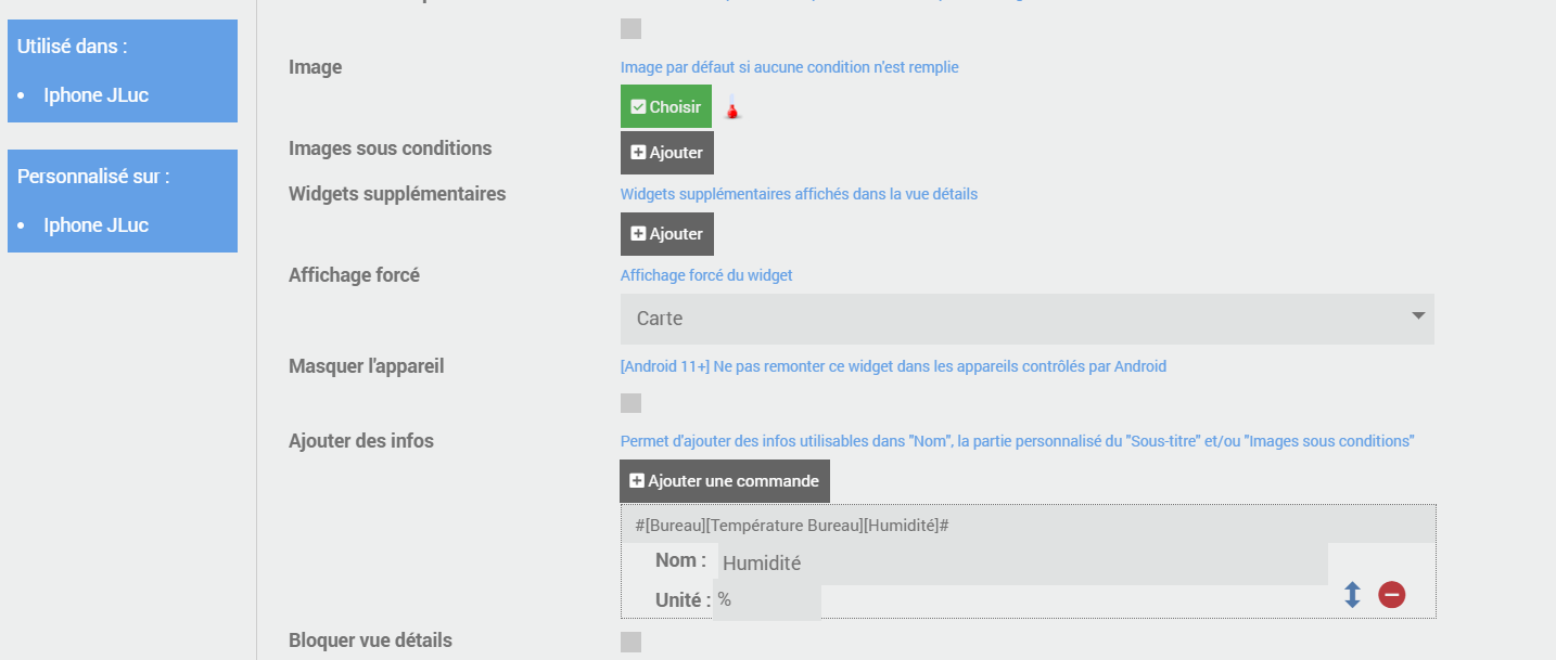 J’ai crée un widget Température et je souhaite afficher la température et l’humidité.