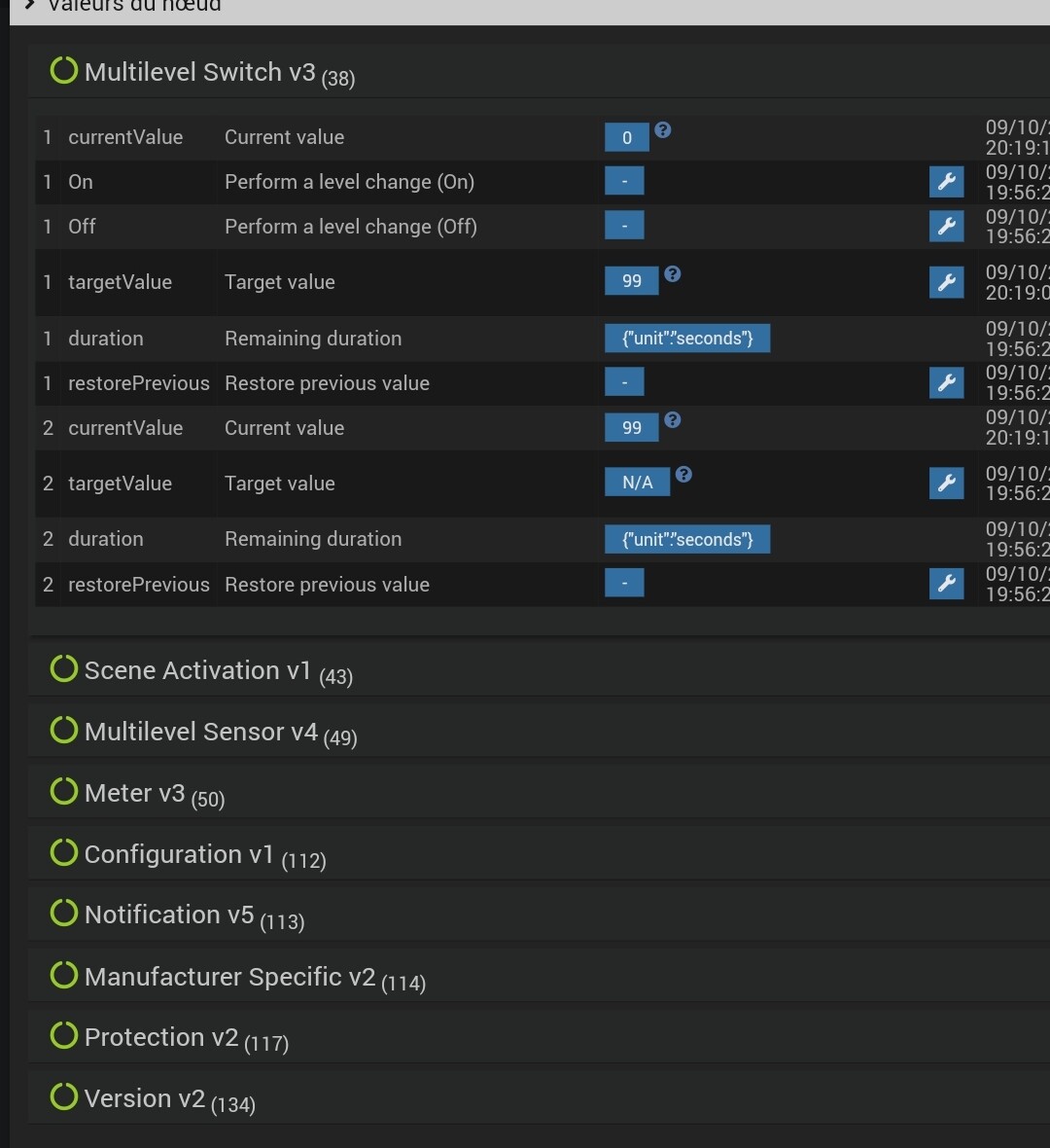 Bonsoir et merci, le premier, qui s’allumait correctement puis s’éteignait fonctionne bien après l’auto calibration, et pour le second, voici les informations du nœud