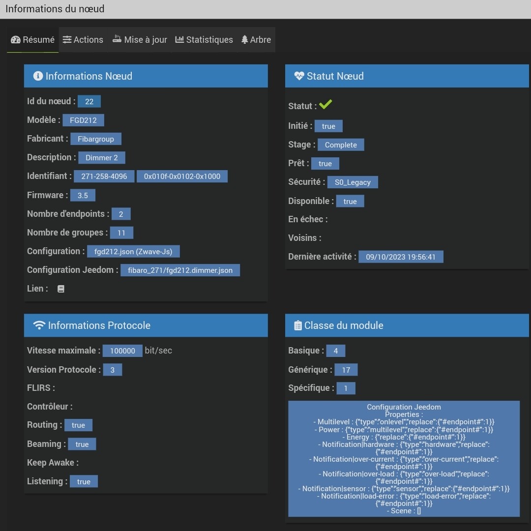Bonjour, j’ai effectué la migration vers Z-wave JS, et depuis mes deux modules FGD212 Dimmer 2 en va et vient (Firmware 3.5) ne fonctionne plus, de marnière différente, l’un peut s’allumer (via jeedom ou physiquement) puis s’éteins 2 secondes plus tard, tout seul, tandis que l’autre module, peut s’allumer via le bouton physique mais pas via jeedom, auriez-vous une idée du problème?