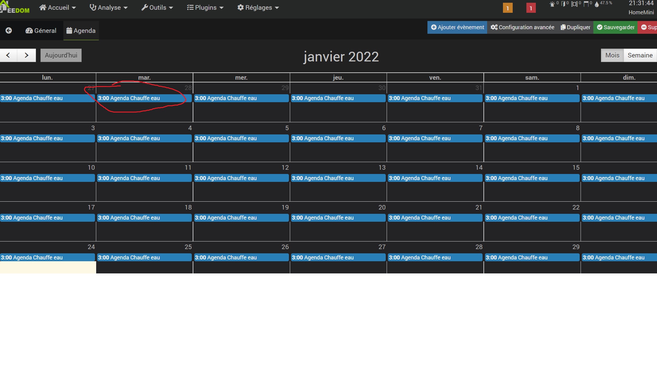 J’ai un probleme avec le plugin agenda, quand je choisi 2H dans la programmation il affiche 3H .