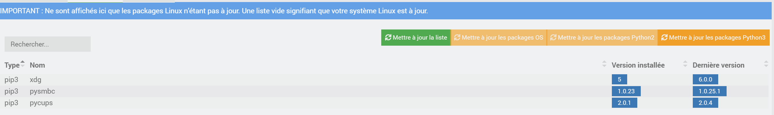 J’ai également 3 modules python qui ne veulent pas se mettre à jour