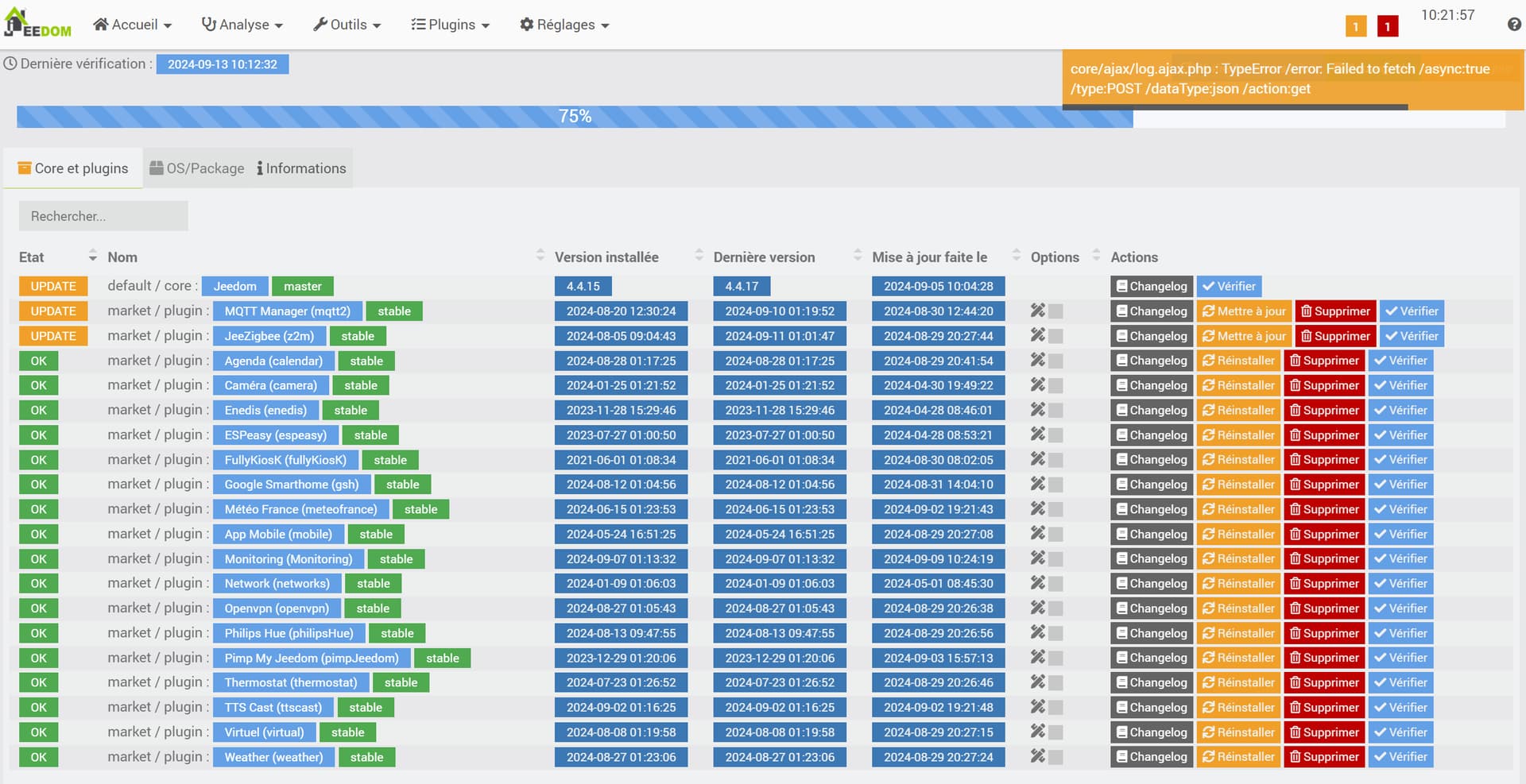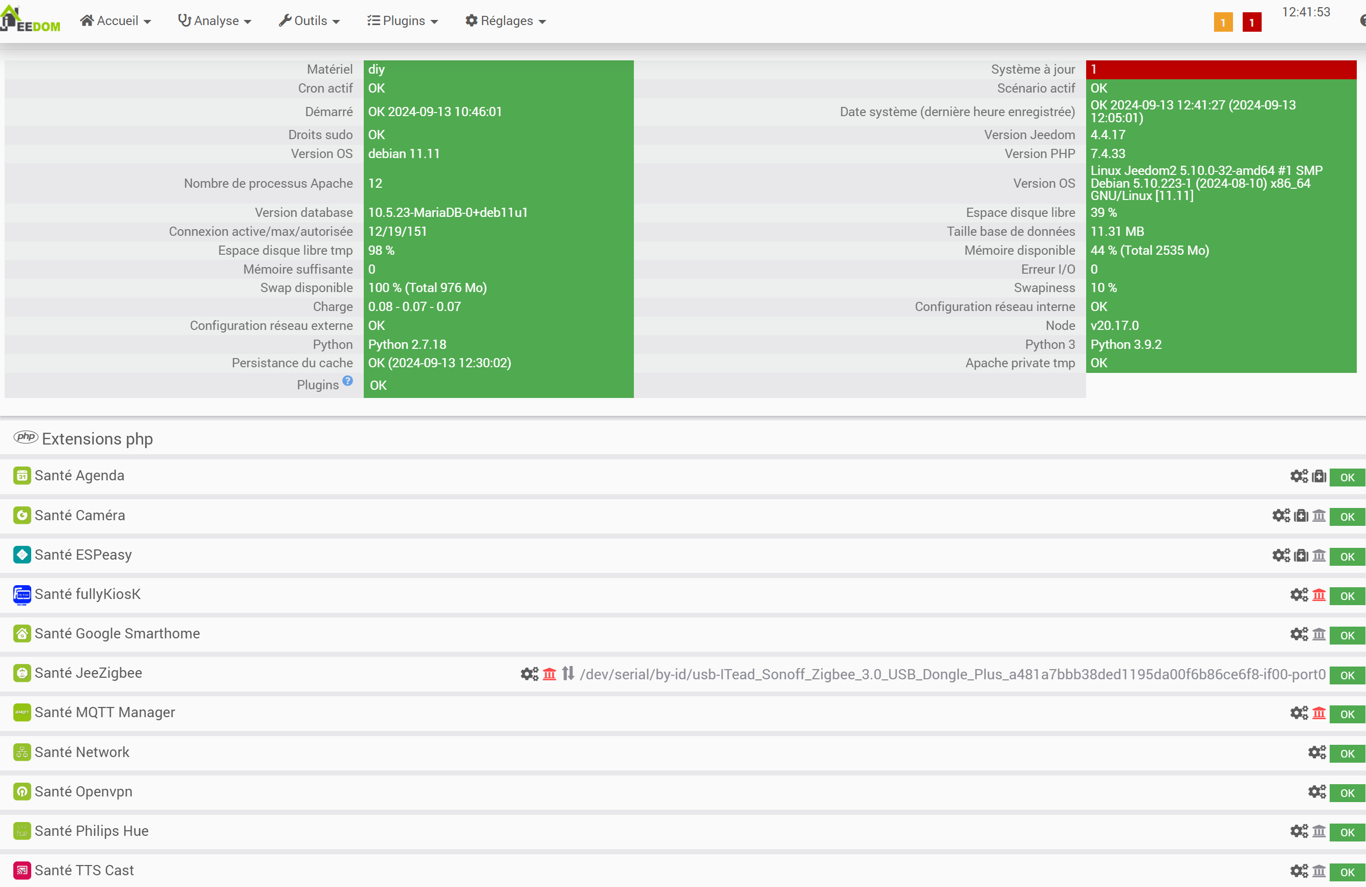 Pour Jeedom je suis à la dernière version 4.4.17