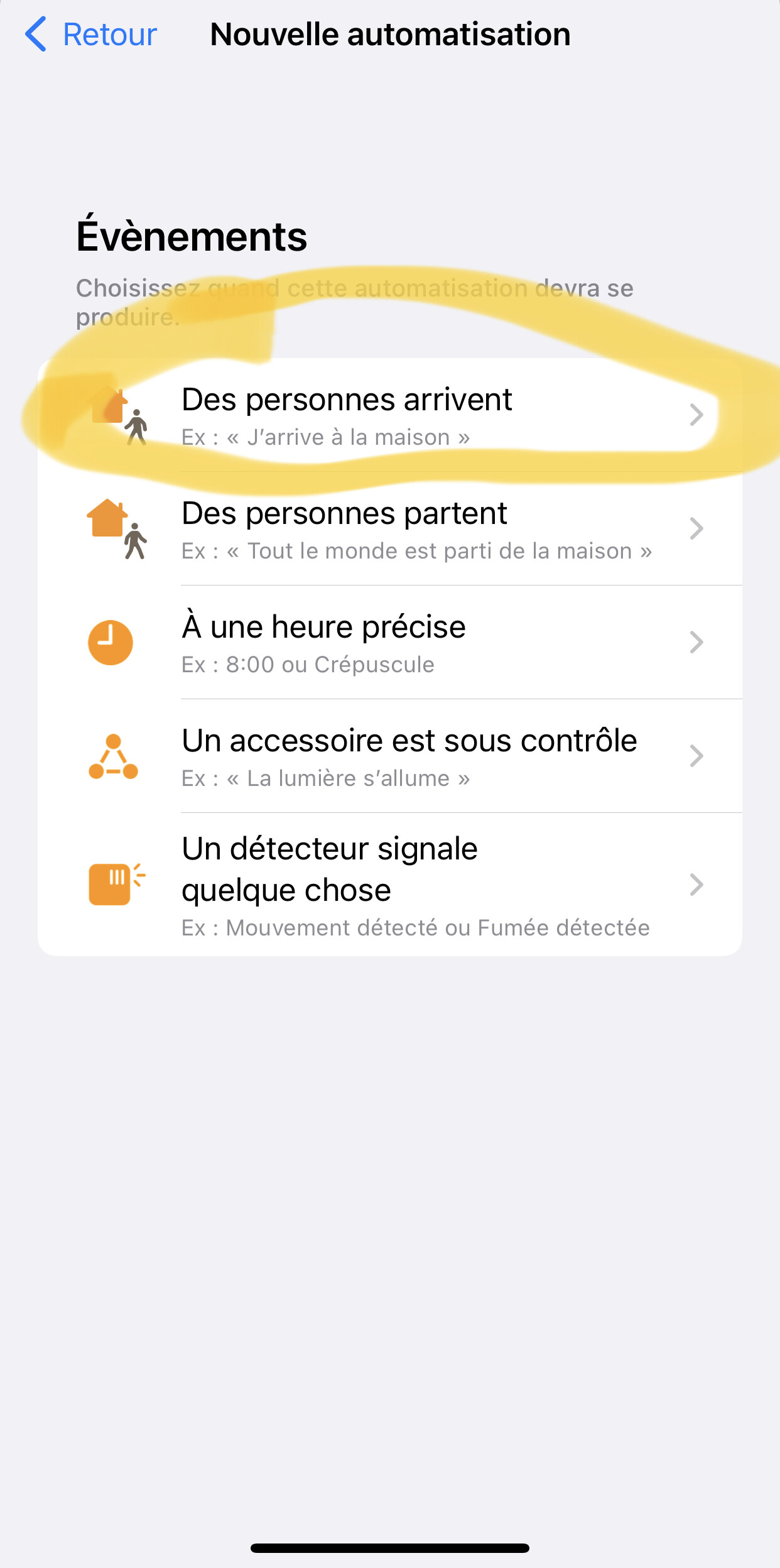 Ensuite sur ‹ Créer une automatisation pour le domicile ›