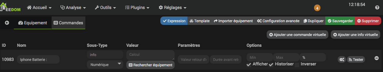 J’arrive à avoir la remontée de la batterie qui s’affiche dans Jeedom.