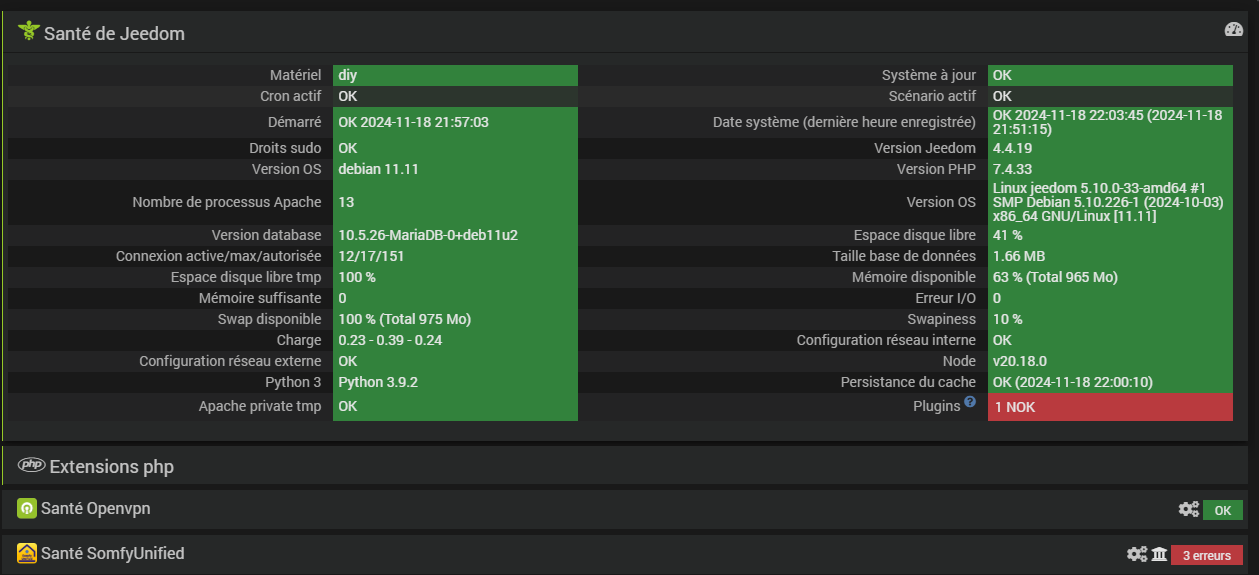 Version OS|Linux jeedom 5.10.0-33-amd64 #1 SMP Debian 5.10.226-1 (2024-10-03) x86_64 GNU/Linux [11.11]|