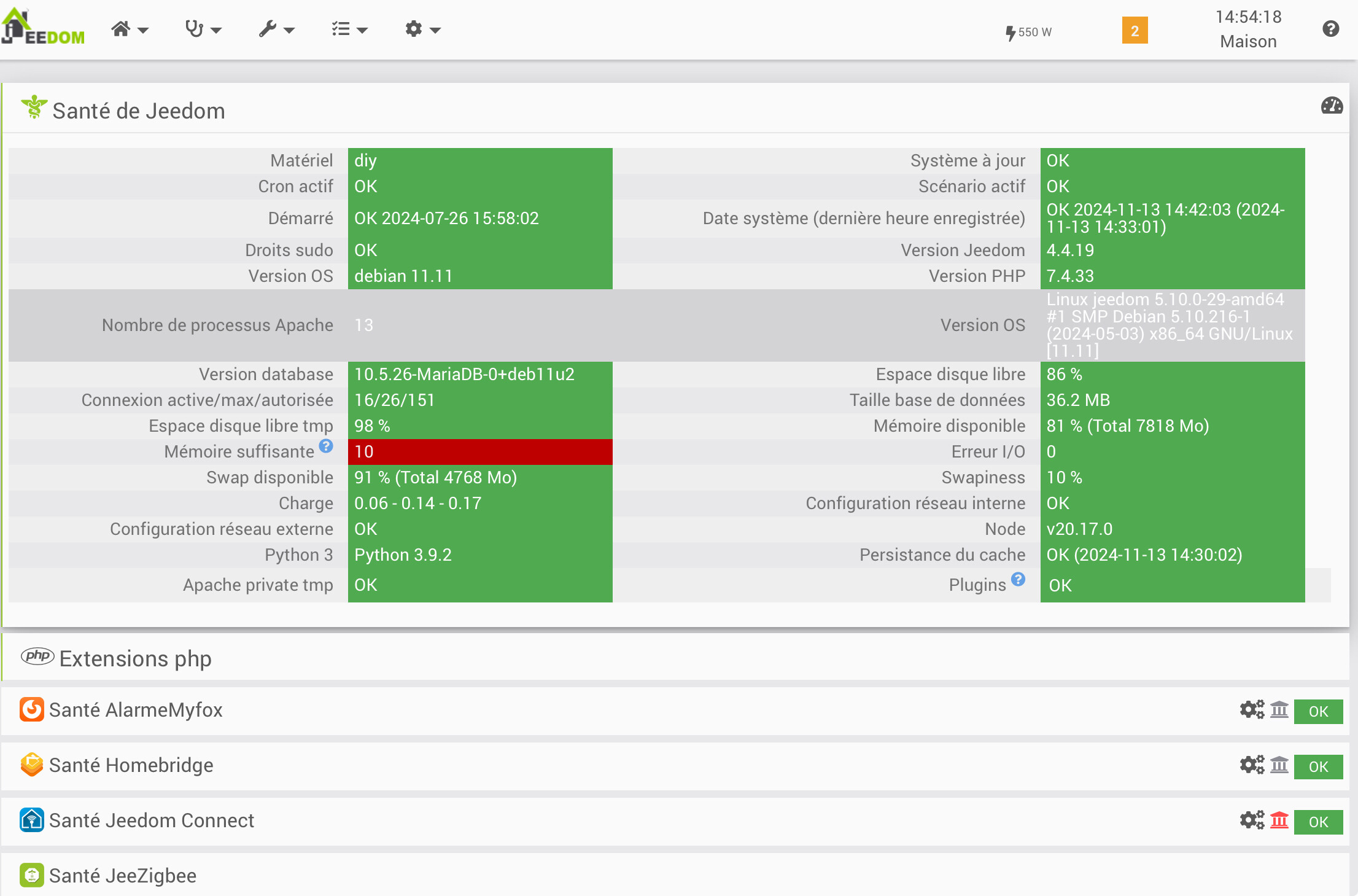 J’ai une petite question pourquoi dans ma page santé jeedom me dit mémoire insuffisante alors que dans mémoire disponible j’ai plus 80% de libre?