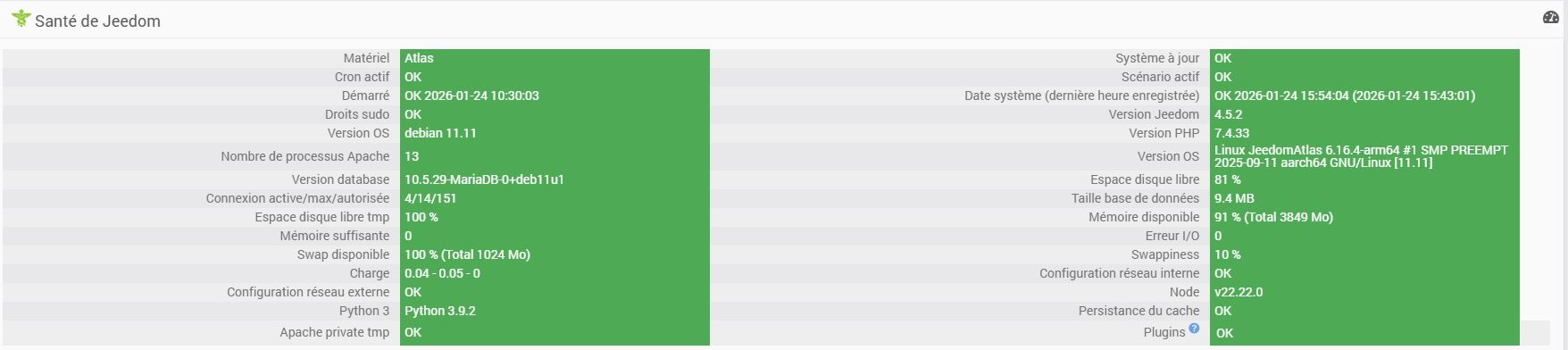 En suivant le tuto (Installer Debian 11 sur box Atlas de Furaxword), je suis maintenant passé en 4.5.2 et Debian 11.11 (ci-joint copie de la page santé).
