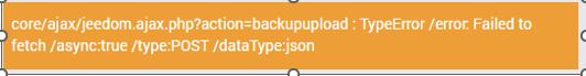 En effectuant Système → Sauvegarde → Ajouter une sauvegarde et sélectionnant la sauvegarde (backup-Jeedom_Atlas-4.3.16-2026-01-21-15h40.tar.gz) sur mon pc, au bout d’une minute, j’ai le message d’erreur : core/ajax/jeedom.ajax.php?action=backupupload : TypeError /error: Failed to fetch /async:true /type:Post /dataType:json .