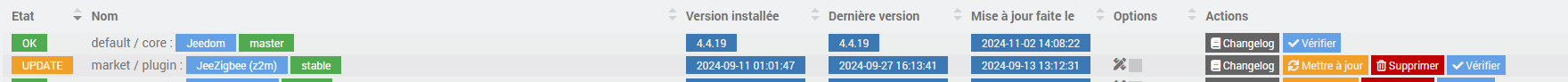 Aprés avoir mis-à-jour Jeedom à jour ce jour en 4.4.19, une MàJ du Plugin JeeZigbee ne semble pas passer: