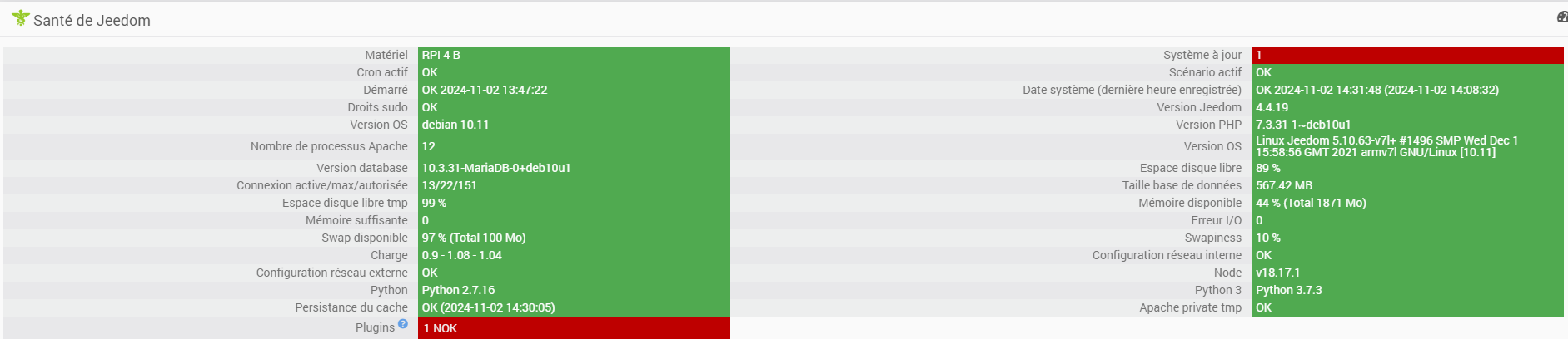 Page santé de mon install’ (sur RPi) si ça peut aider: