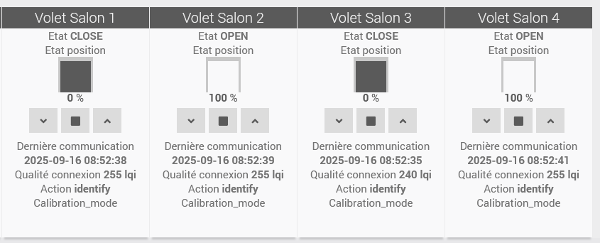 Encore mieux, la fonction de positionnement à l’air de fonctionner : Lorsque je rentre 25% le volet s’arrête au 1/4 ouvert. Bon, ça ne fonctionne que sur l’un des deux, il y a sûrement un peu de calibration à faire (je vais creuser ça pendant le week-end).