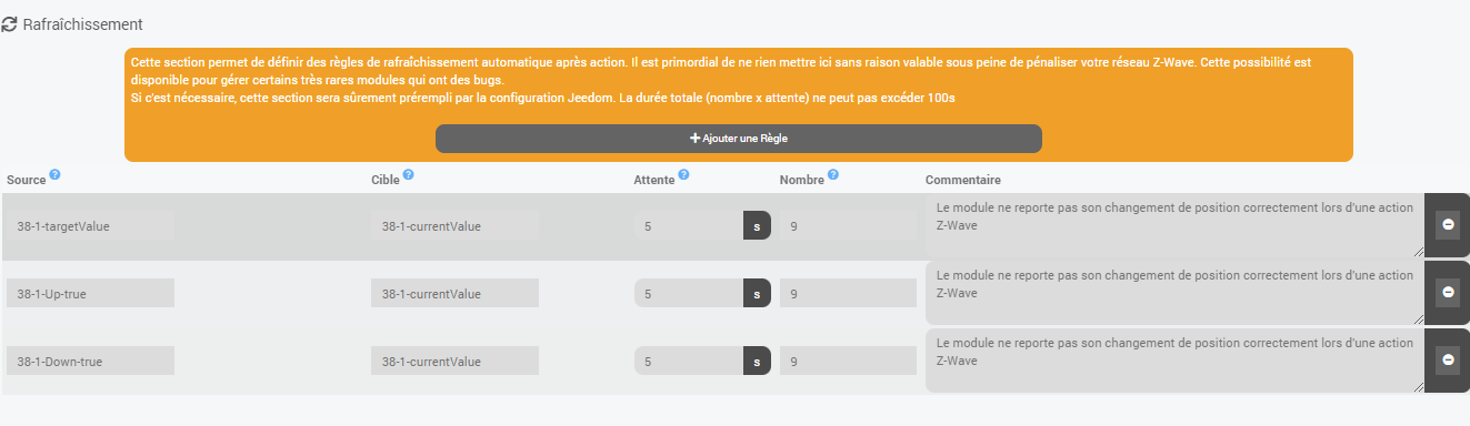 Si tu utilises directement zwavejs depuis son interface propre ? Il.devrait y avoir un bouton pour. Je n’utilise pas le plugin jeedom mais jmqtt perso.