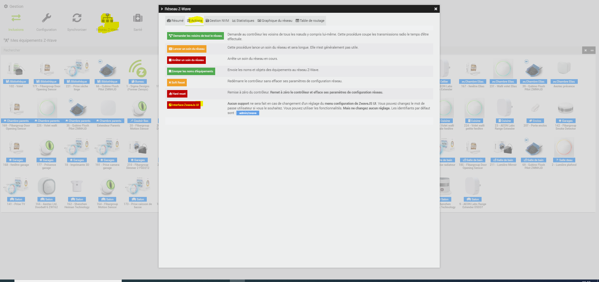 Réseau zwave => onglet action => interface zwaveJS