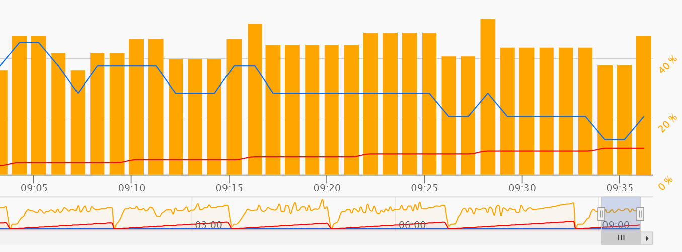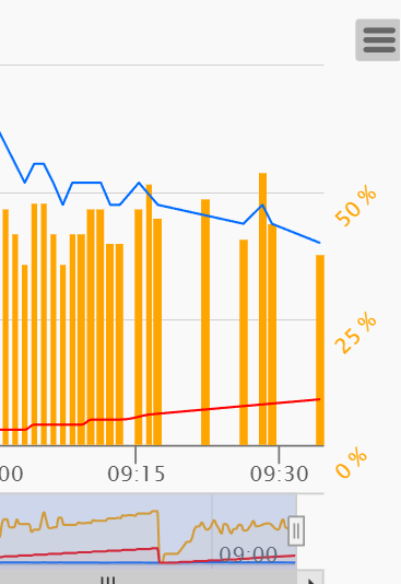Pour aider, voici de nouveau le graph avec un zoom à 30 minutes puis laissé en mise à jour automatique, même problème, des données pas prises en compte à partir de 9:37 (minute suivante de l’affichage du graph