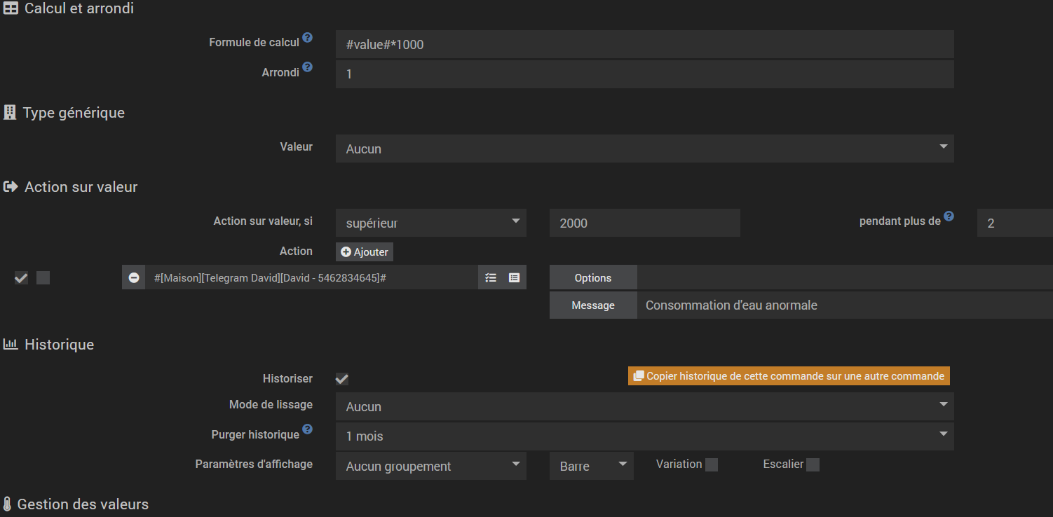Peux-tu montrer une capture de l’équipement et de la commande #[Environnement][Cumul Pluie][Veille]# ainsi que le graph de l’historique de la commande.