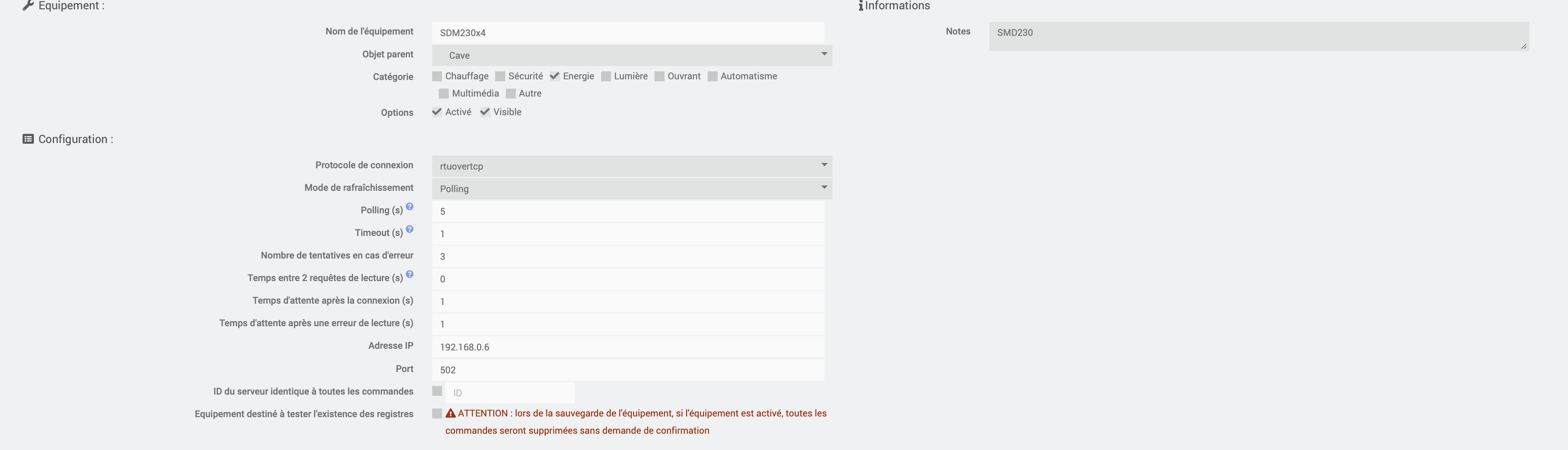 Mais pour le module RTUOVERCP avec quatre SMD230 dessus je me retrouve avec 3 import énergie active divisé par 1000 est un de bon.je precise que je n’ai aucune formule dessus.