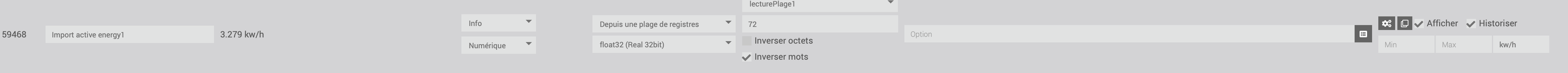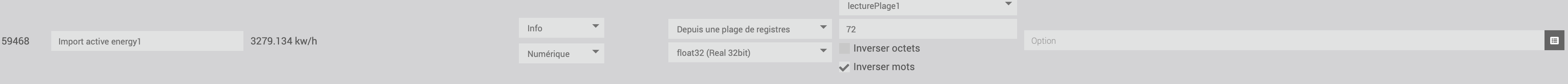 Dans les logs je retrouve bien la bonne valeur « Import active energy1 » = 3278.592041015625
