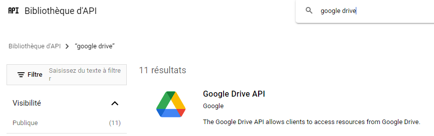 Ca part mal, il me demande sélectionner DRIVE parmi les API et services activés et il n’y a pas Drive, juste ça et il y a de quoi hésiter entre les différents Cloud :