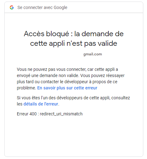 Tout simplement que l’URL de redirection entre le plugin et celle définie dans ton application sur la console Google n’est pas équivalente