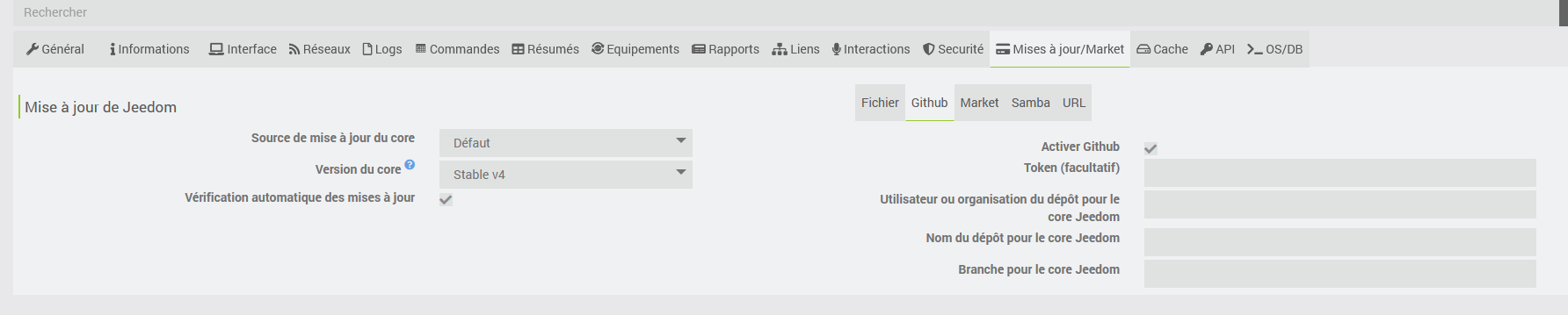 Le plus simple pour l’installation est d’activer le github dans le panneau de config