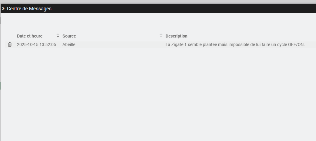 en revanche, l’erreur « la zigate semble avoir un problème. impossible de faire un cycle ON/OFF » revient quand je repasse l’option « Blocage cycle OFF/ON Zigates USB » sur non
