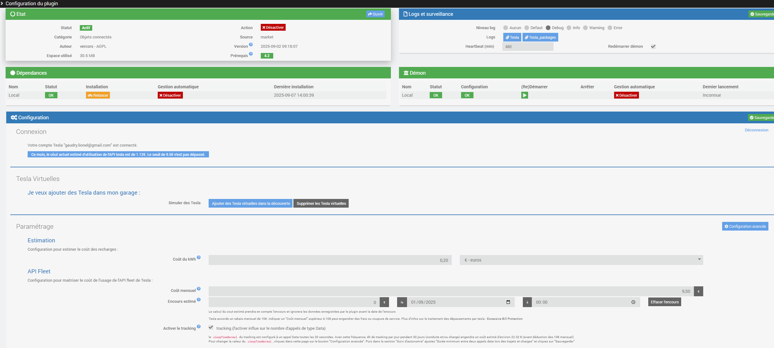 Bonjour, je viens de réactiver le tracking sur le plugin Tesla (que je n’utilisais plus depuis les changement sur l’API Tesla) il y a 3 jours :