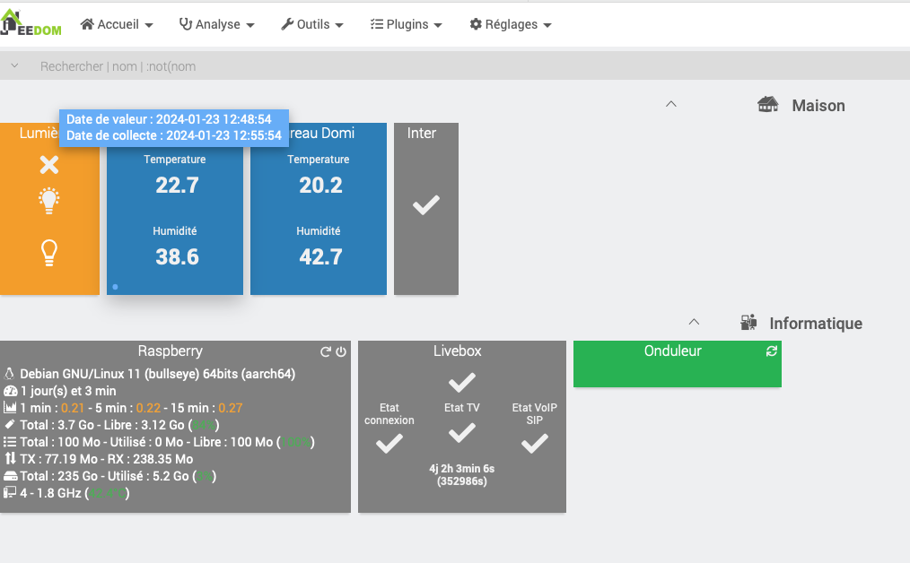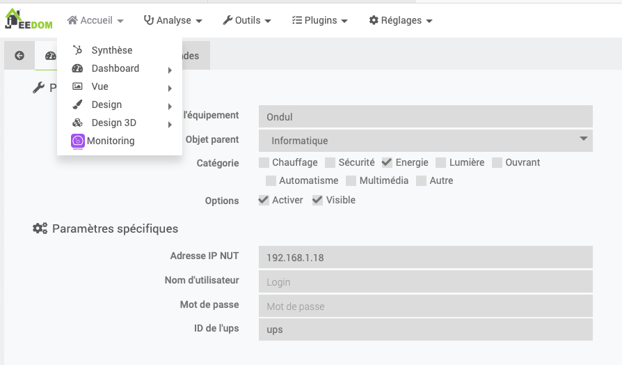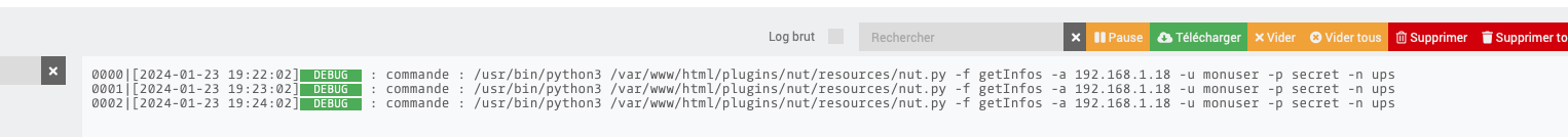 Bonjour, débutant sur Jeedom, j’ai installé le plugins NUT pour monitoire les info de mon onduleur APC qui est connecté sur mon NAS Synology. Dans mon ancienne domotique Domoticz, les info remontaient bien.