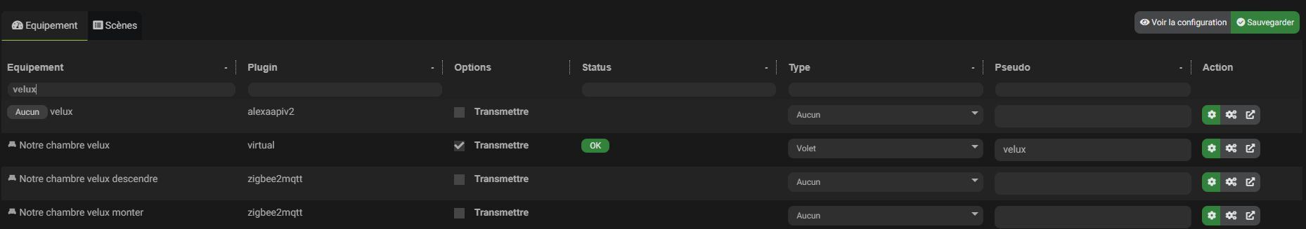 le vert, pour remettre les bases, alexa(ash) sert a envoyer des équipement jeedom dans Alexa, a l’inverse du plugin AlexaAPI. le bleu est l’ancienne version de alexa API.